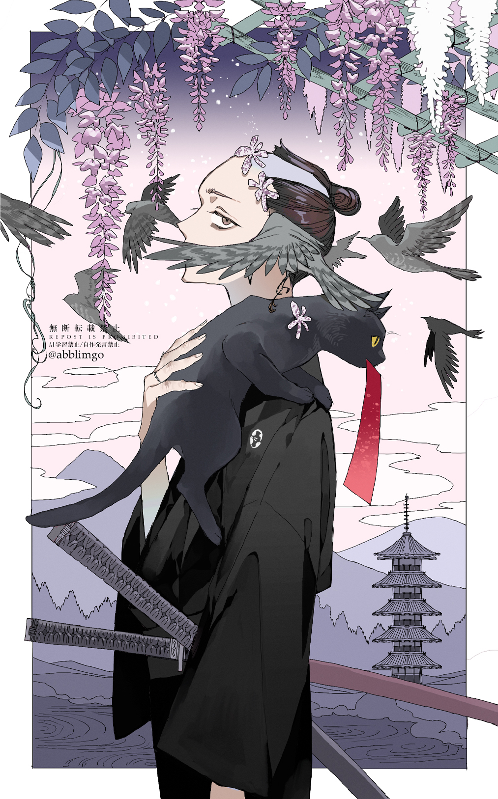 なんとなく死や喪をイメージしたかったので黒い着物を描きました。