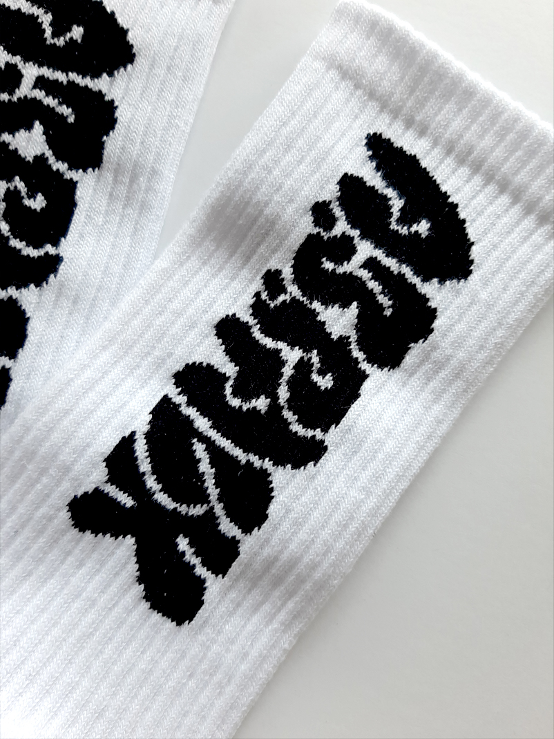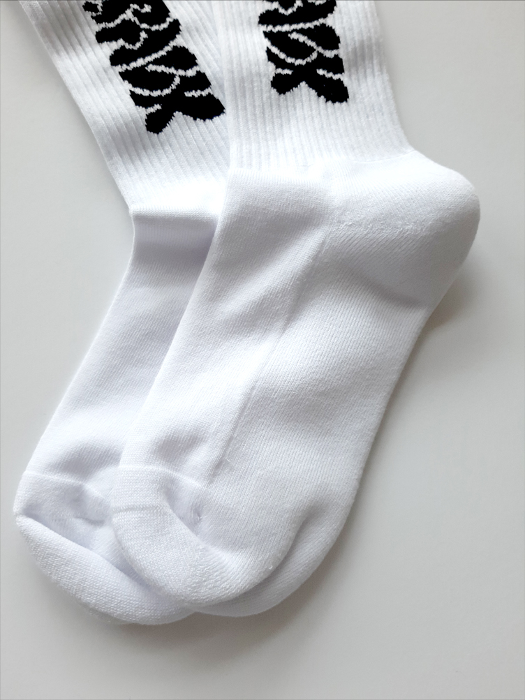 作りたかった~~~~靴下。白と黒の2色展開です。