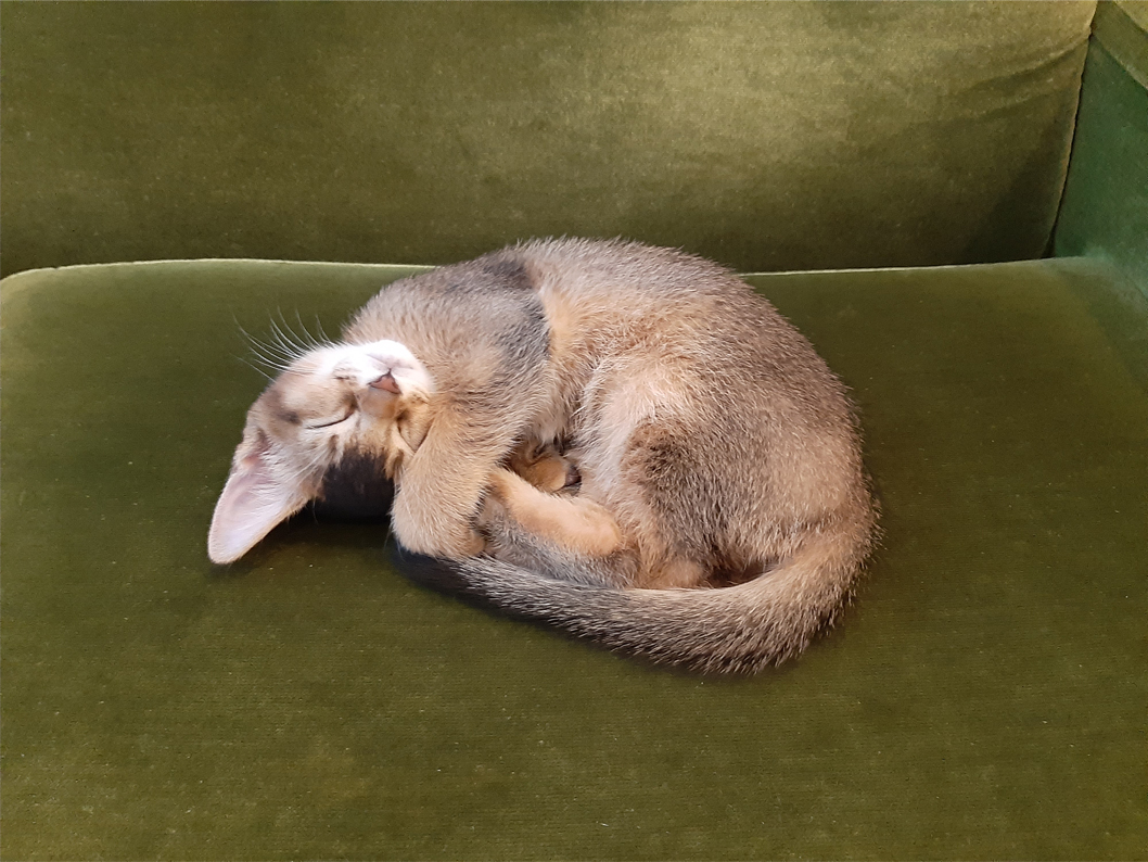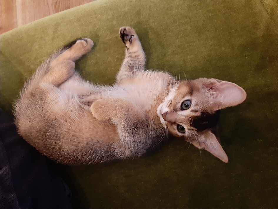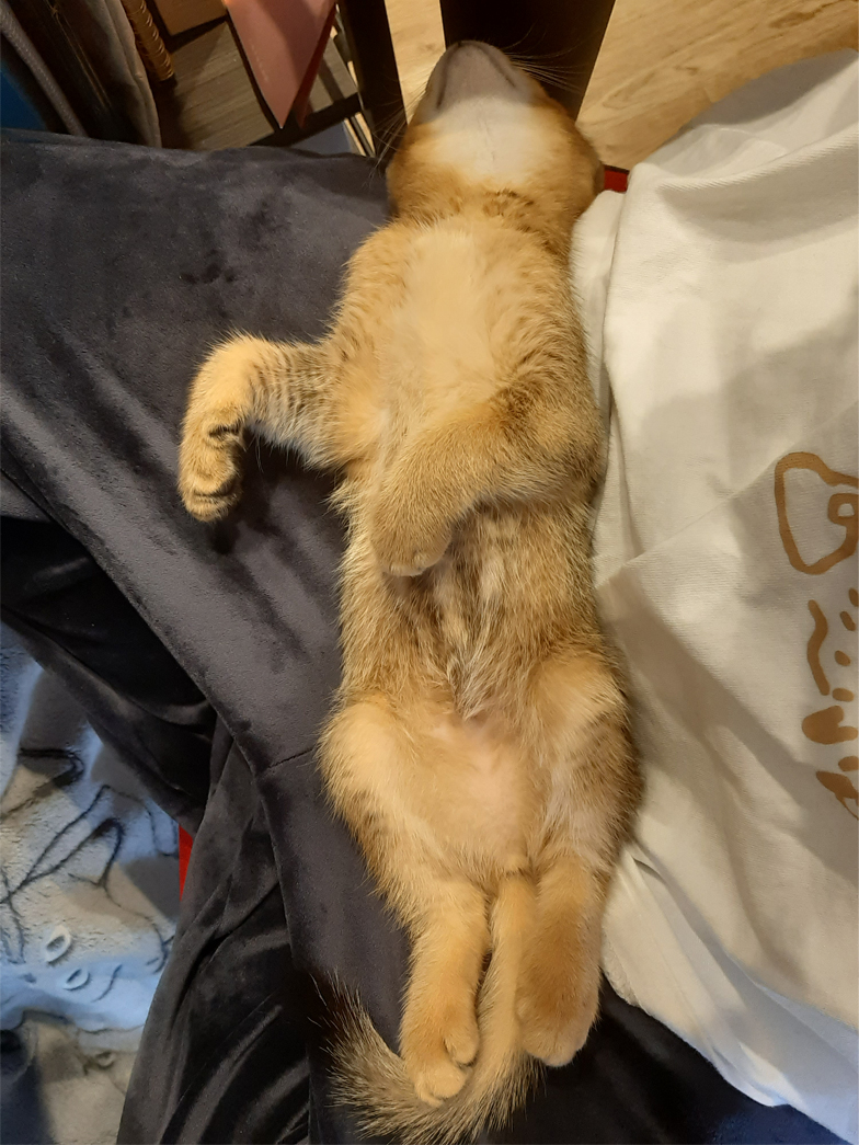 家に来て2日目でへそ天で寝ていたので、リラックスできているのか、堂々としているように見えます。