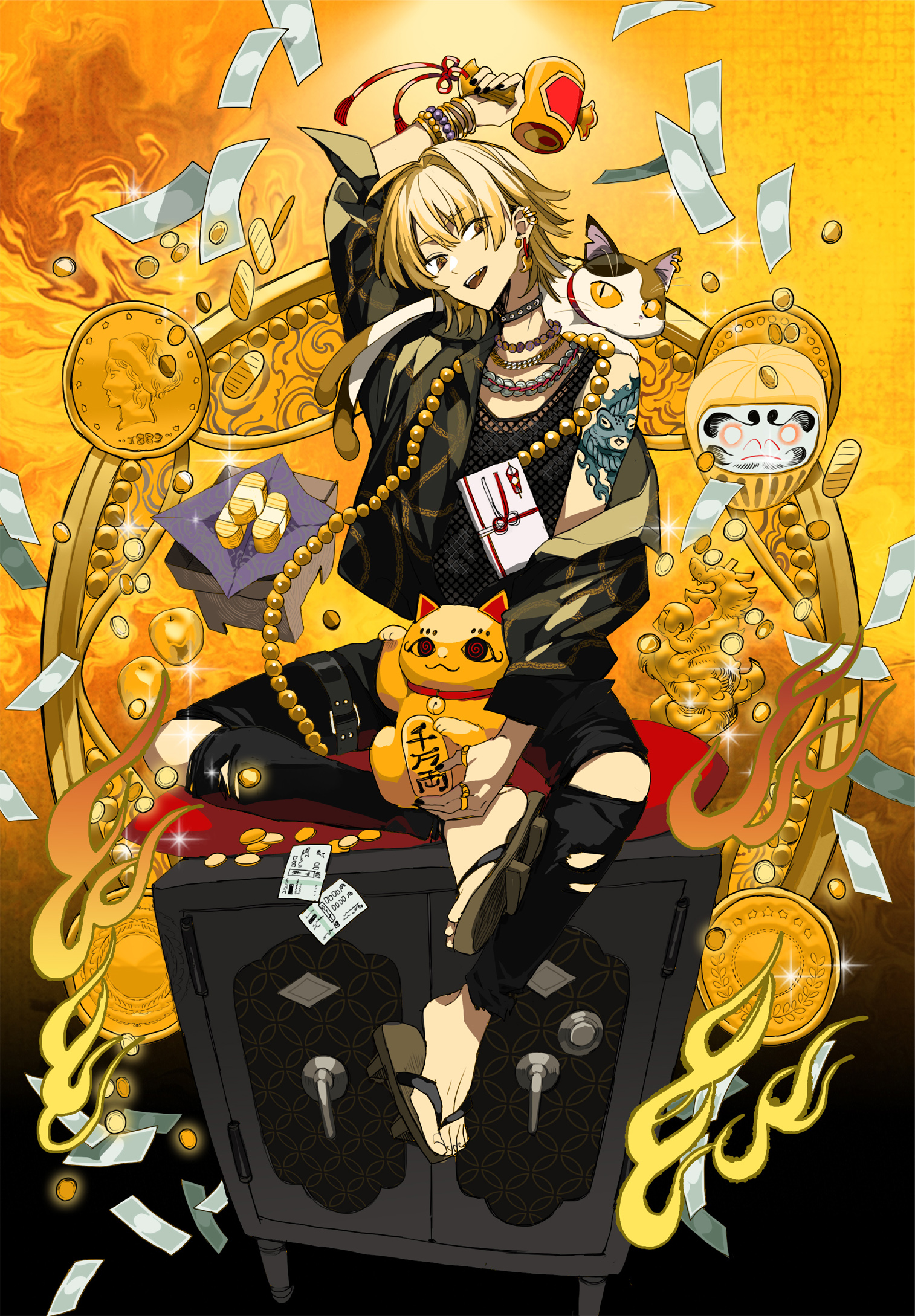 「金運」をテーマに描きました。裏テーマは「世の中金」です。
